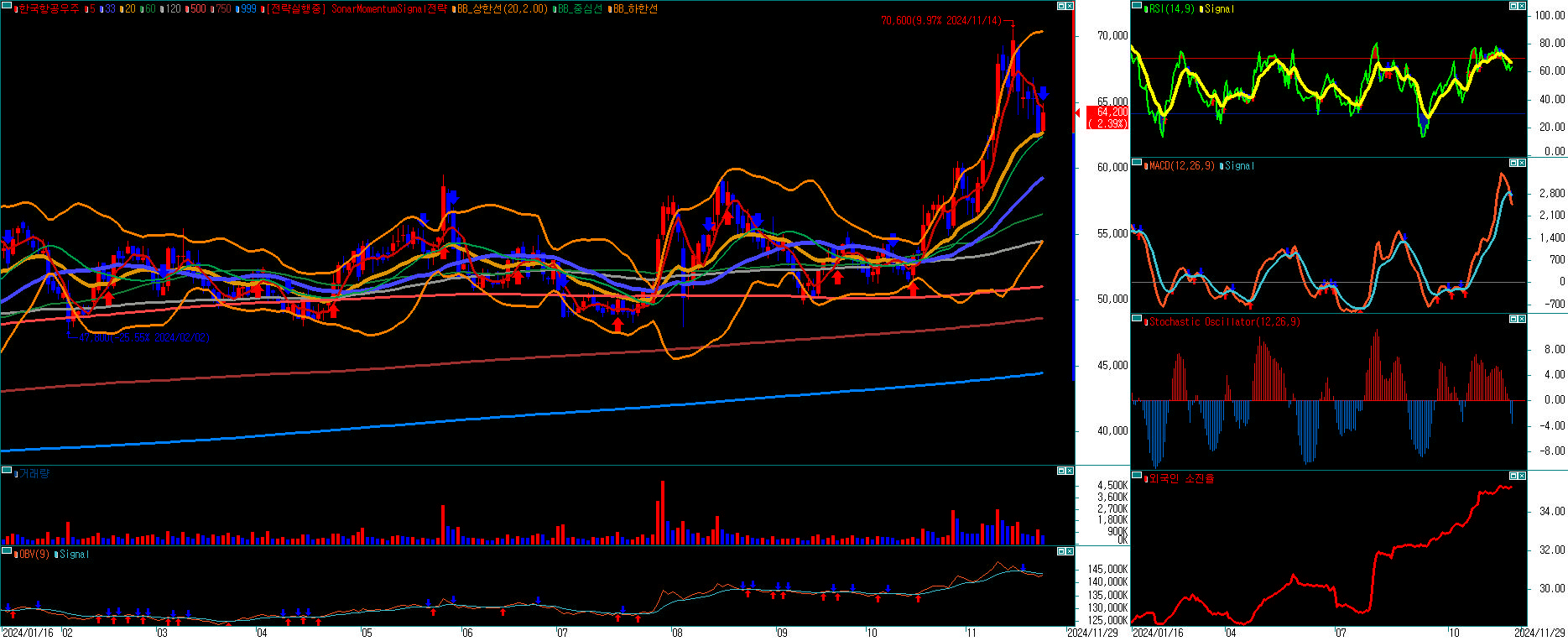 - 현재 70,000원대 고점 형성 후 조정 예상