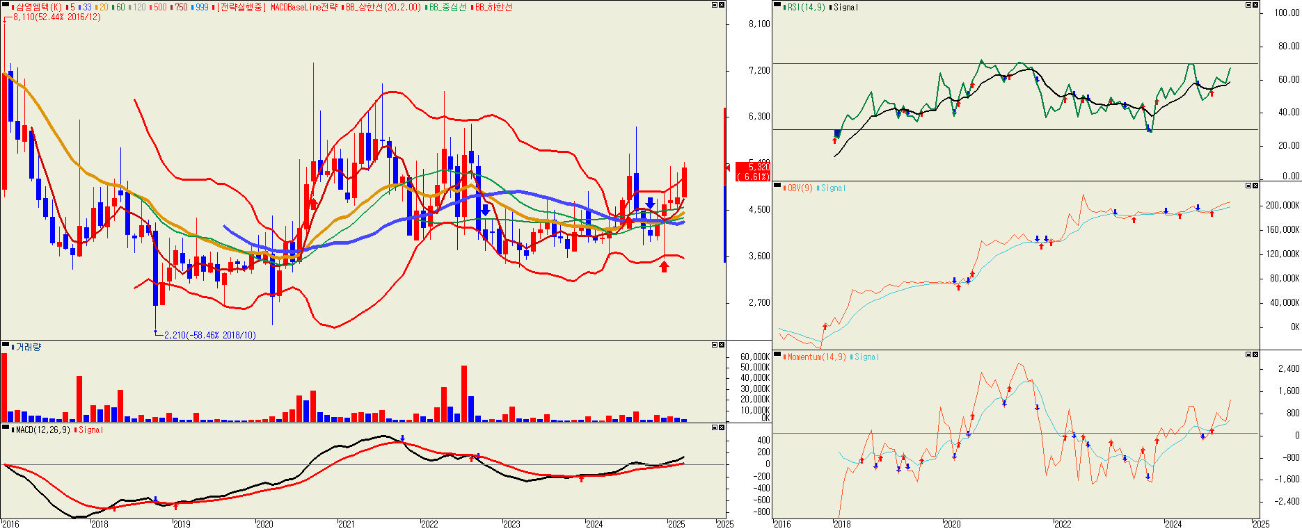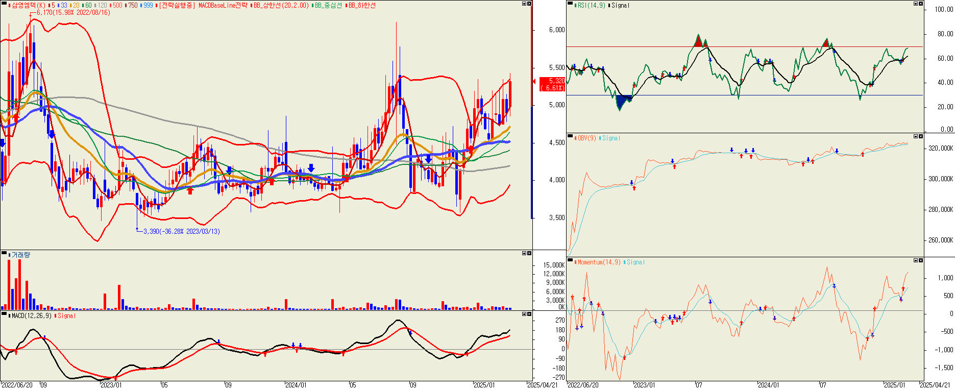 삼영엠텍은 장기적, 중기적 관점에서 강한 상승 추세를 유지하고 있으며, 거래량과 기술적 지표 모두 긍정적인 신호를 보내고 있습니다.