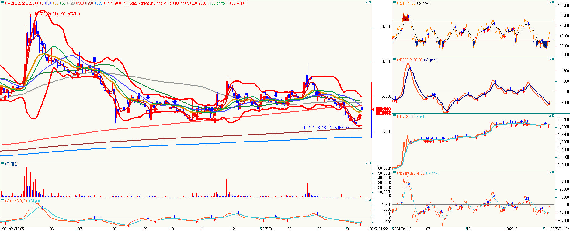 월봉상 거래량 증가와 OBV 상승은 긍정적이나, 추가 상승을 위해선 실적 모멘텀 또는 시장 수급 개선 필요. - 리스크:
