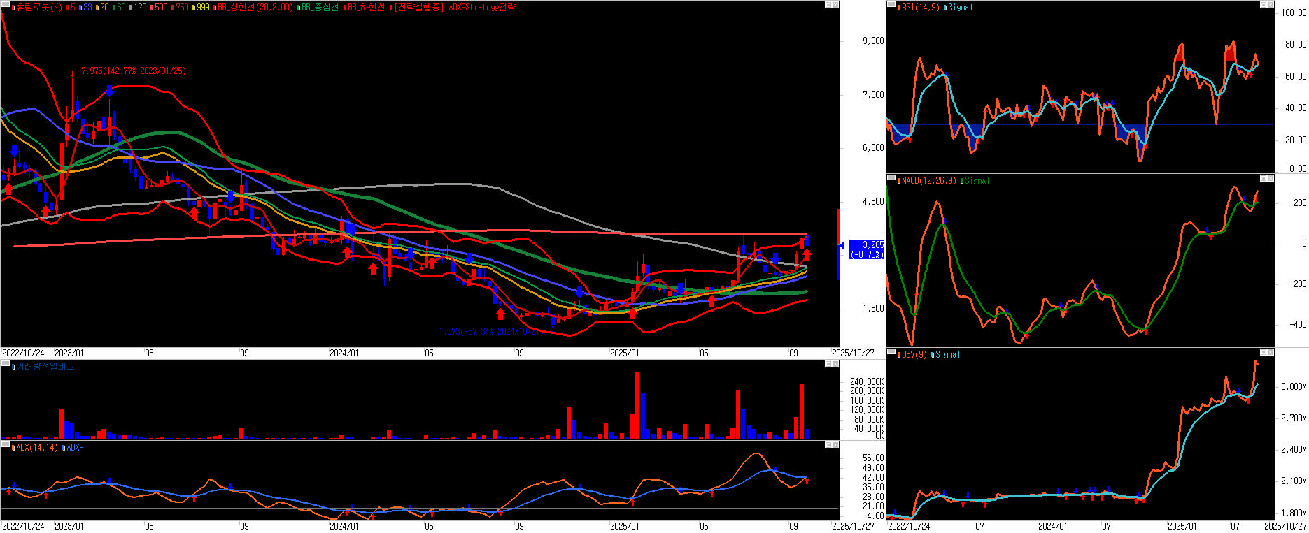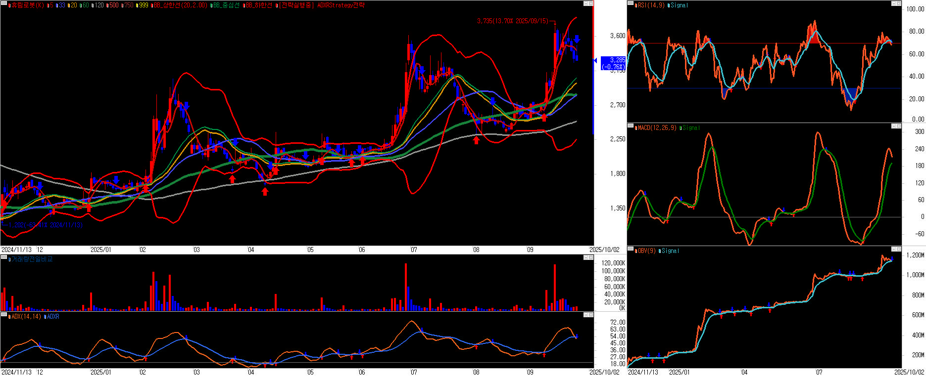 - 매수세가 로봇주 계열 전반에 몰리며 휴림로봇도 거래량 및 수급 개선. 주요 경쟁사(로보티즈·로보로보 등) 급등 흐름이 동반 반영되어 휴림로봇도 상승