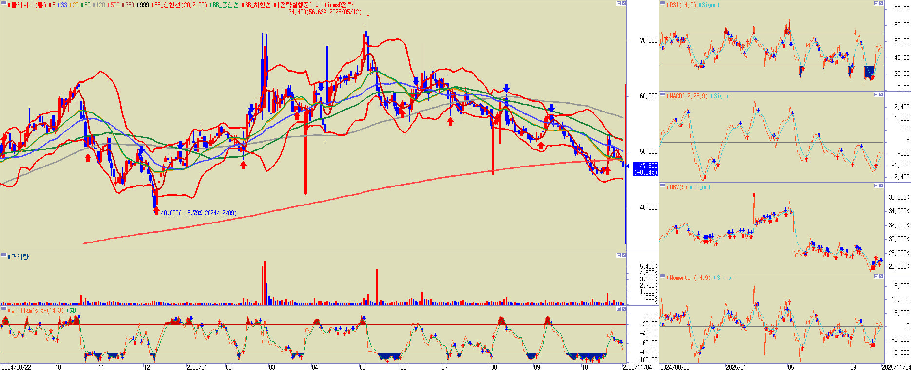 - 분기 실적 발표 이후 영업이익률 둔화와 수익성 우려로 실적 모멘텀에 대한 기대감이 약화되어, 단기 매도세가 증가하는 신중한 투자 심리가 지배적입니다