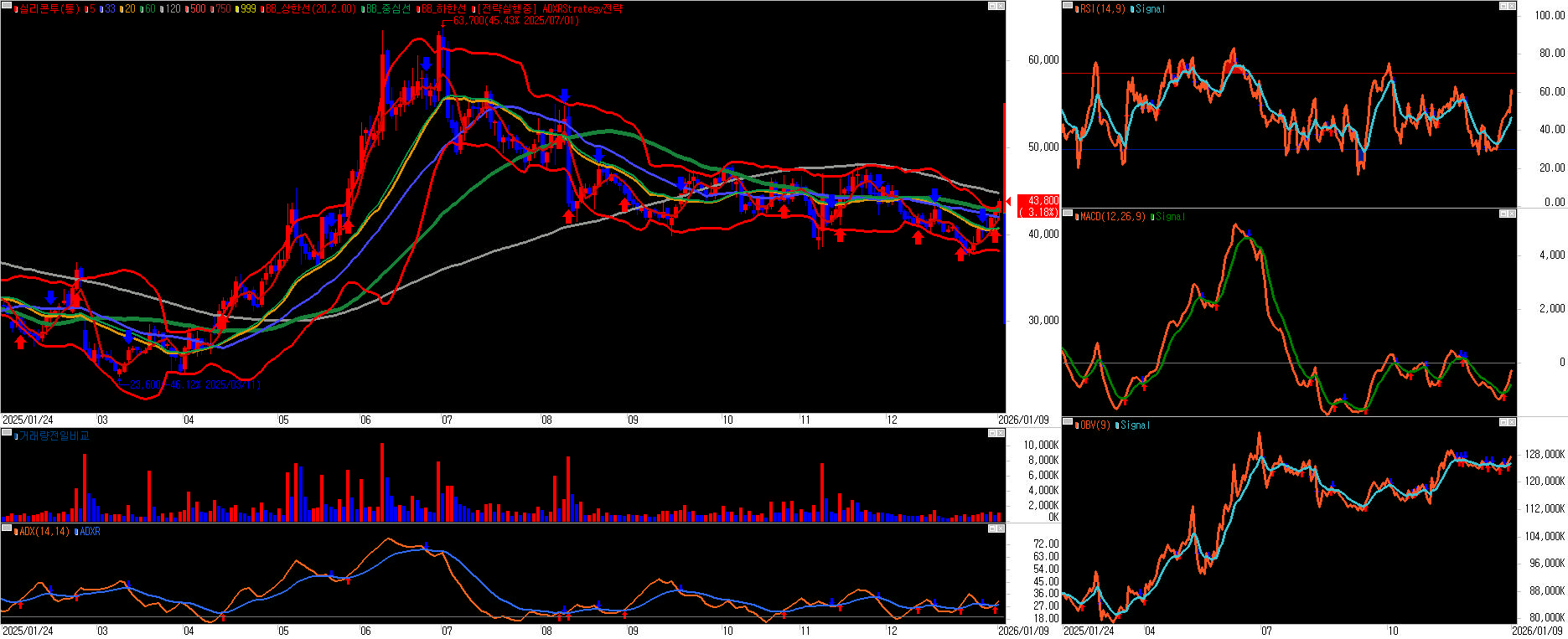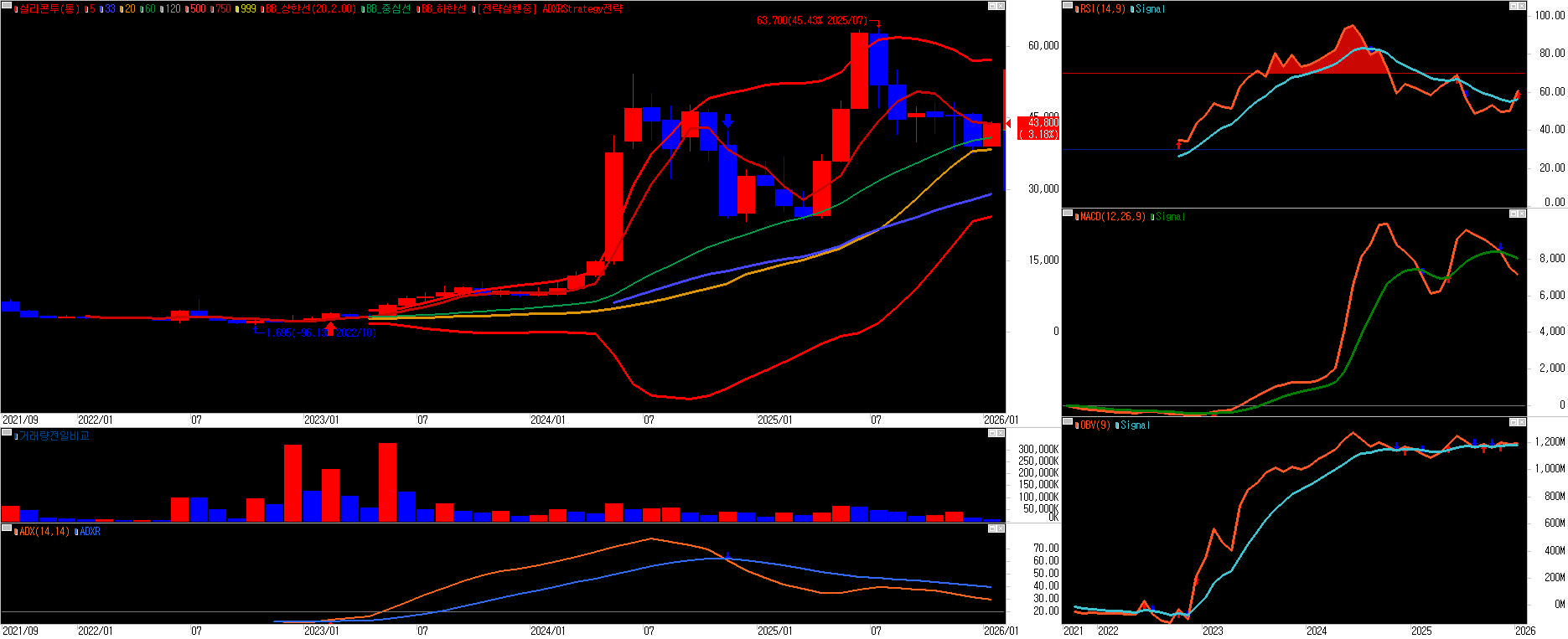 정리하면, 실리콘투는 현재 구간에서 중장기 성장 관점의 비중 확대는 논리적으로 가능한 종목이지만, 이미 재상승 국면에 진입한 만큼 “단기 급등·급락을 전제로 한 분할 대응과 리스크 관리”가 필수입니다.