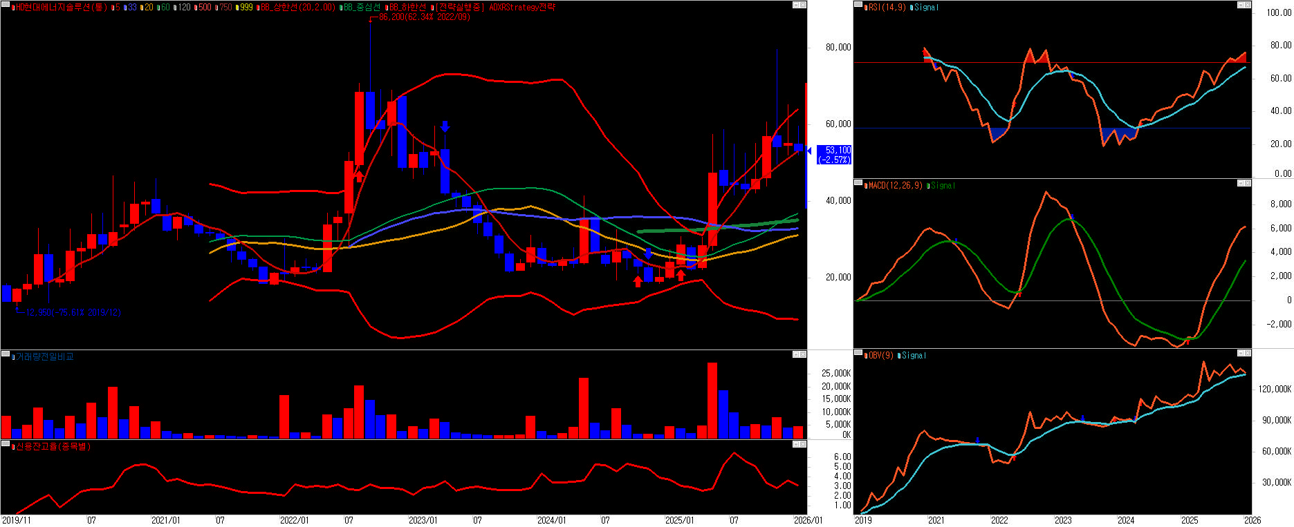 - 2026년 1월 초·중순 코스피가 사상 최고치 경신과 변동성 확대를 반복하는 과정에서, 성장주·정책주·에너지 관련주의 차익 실현·섹터 로테이션이 동시에 진행되어 HD현대에너지솔루션도 ‘섹터 조정’의 한 부분으로 편입되었습니다