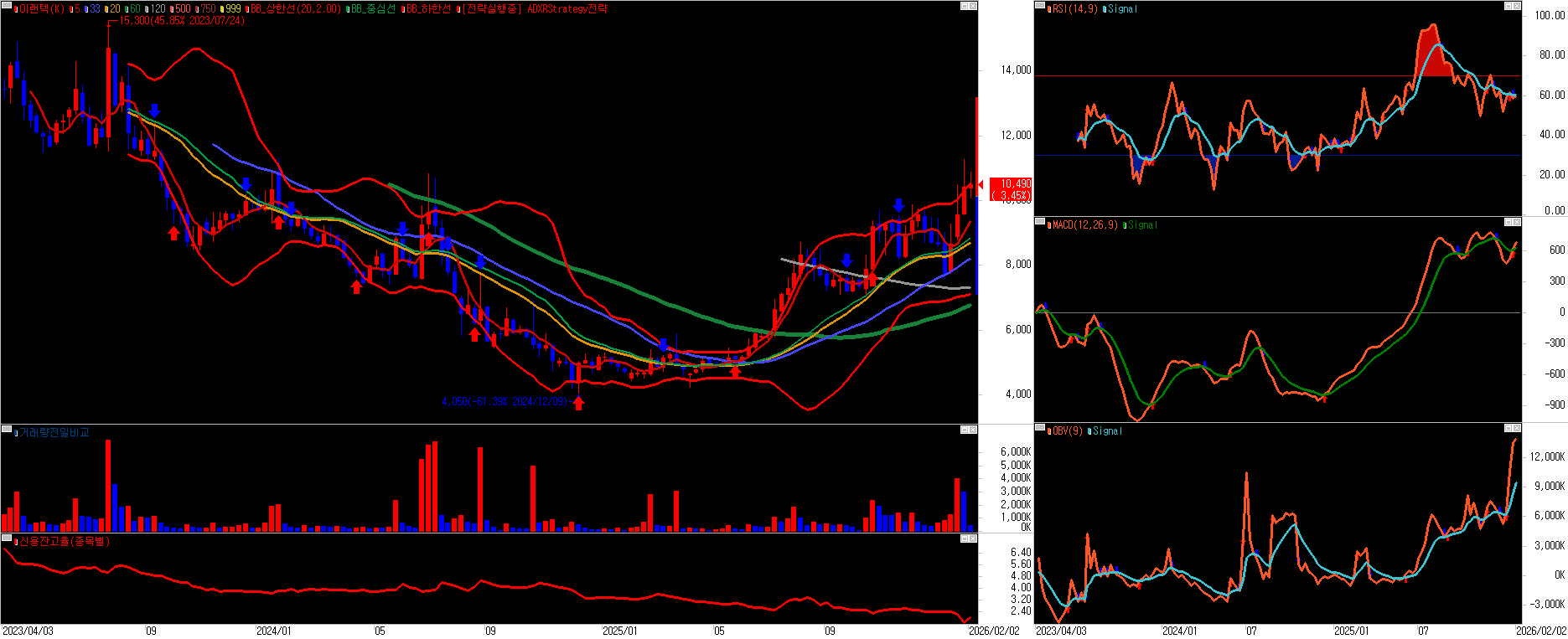 - VI 발동 및 거래량 증가: 1월 후반 VI 발동 구간에서 거래대금이 증가하며 모멘텀 매매 수요가 유입됐고, 이후 단기 트레이딩 수요가 상승 탄력을 키웠습니다