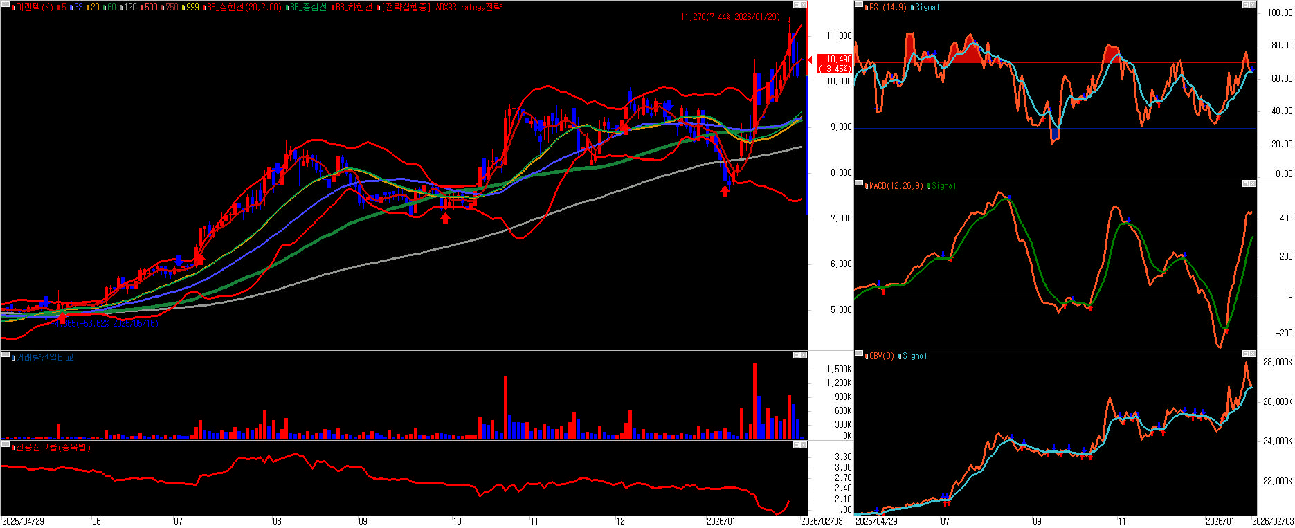 - 중기 추세 상향 유지: 3개월 수익률이 두 자릿수 상승을 기록하는 등 이미 형성된 상승 추세 위에서 단기 눌림 후 재상승 패턴이 이어졌습니다