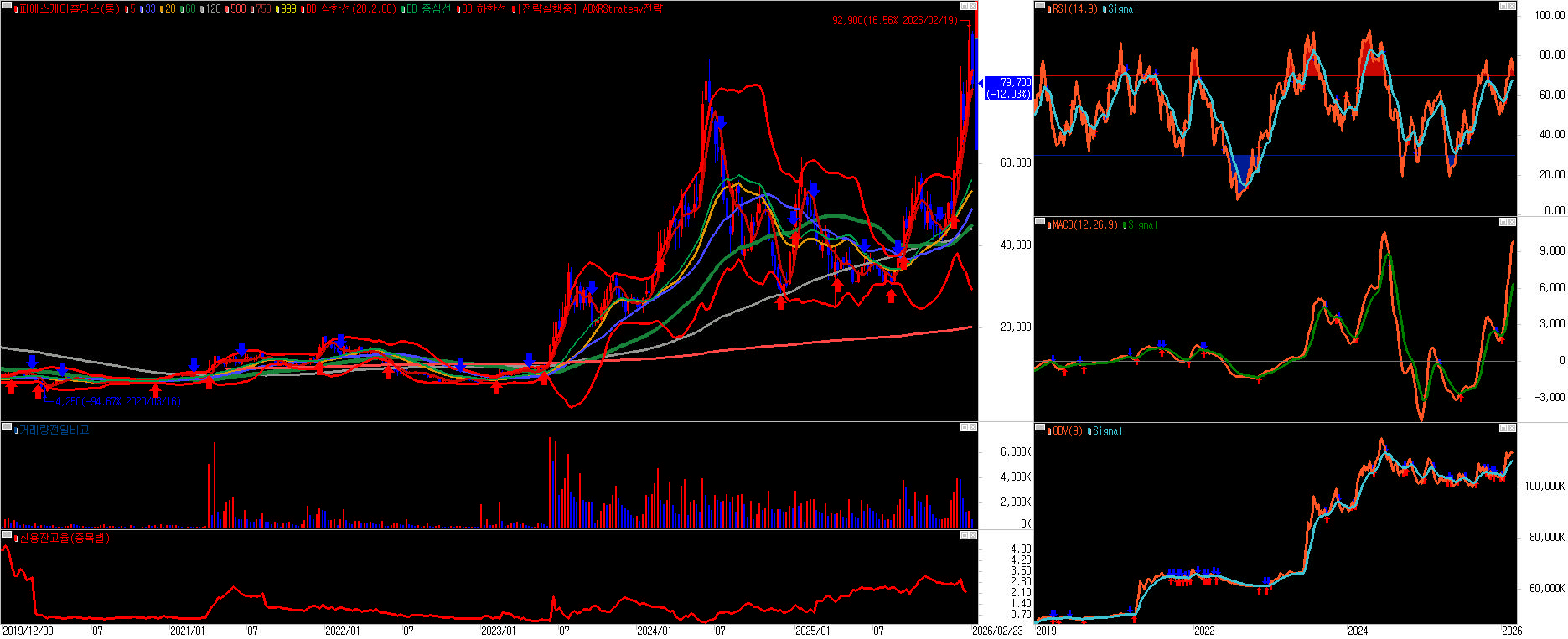 피에스케이홀딩스는 “AI·HBM·첨단 패키징 장기 수혜 + 검증된 실적”이라는 강한 스토리를 가진 성장주이지만, 현재는 고점권 변동성과 밸류에이션 부담이 큰 중·고위험 구간의 추세주로 정리할 수 있습니다