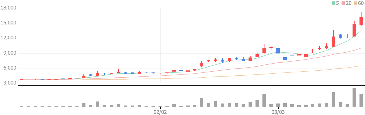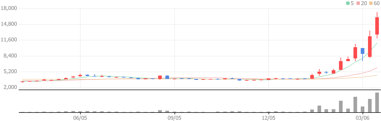 - 3월 중순 기준 가격대(예: 1만2천원 안팎)에서 전주 대비 30% 이상 상승했다는 데이터가 나타나, 추세 추종·모멘텀 매매 수급이 대거 유입될 수 있는 환경