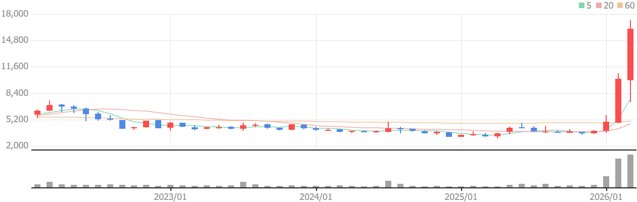 - 2026년 3월 19일 기준 주가는 52주 최저 2,940원에서 52주 최고 17,250원을 찍은 뒤, 1만 원대 중후반에서 거래되며 1년 기준 이미 5배 이상 오른 ‘강한 상승 추세의 고가권’에 있습니다