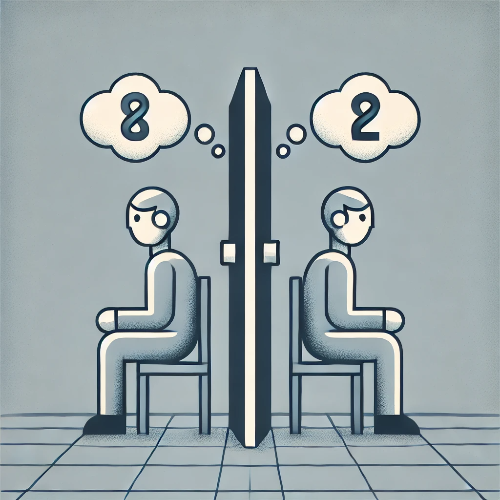 두 명의 범죄 용의자가 체포되어 별도의 취조실에서 심문을 받고 있습니다. 경찰은 두 용의자에게 다음과 같은 제안을 합니다